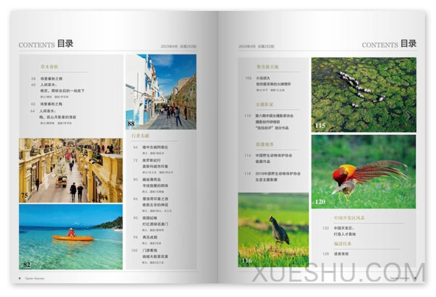 旨在发展旅游文化、传播旅游知识、推介旅游资源、引导旅游消费、服务旅游大众。以旅游经济理论、旅游城市管理、旅游景区建设、旅游改革创新、旅游服务、旅游教育科技、旅游文化产业等为主要内容的综合性理论期刊,主要栏目:你约过人生,于是你来到世上,人生就是阅尽风景,于是《旅游纵览》为你而来。